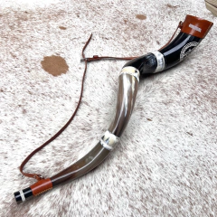 Berrante de fabricação e confeceção de Jairo Agrizzi, da marca BJS BOIADEIRO, fabricado com chifres de gado, emendas em chifre, 4 linhas tradicionais nas emendas, bocal torneado, som grave e macio de tocar. O berrante mais leve do mercado, trabalhado interior .