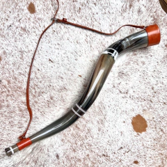 Berrante de fabricação e confeceção de Jairo Agrizzi, da marca BJS BOIADEIRO, fabricado com chifres de gado, emendas em chifre, 4 linhas tradicionais nas emendas, bocal torneado, som grave e macio de tocar. O berrante mais leve do mercado, trabalhado interior .