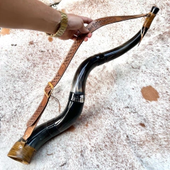 Berrante de fabricação e confecção de Geraldo Agrizzi, fabricado com chifres de gado, emendas em chifre, bocal torneado, som grave e macio de tocar. O berrante mais leve do mercado, trabalhado interior .